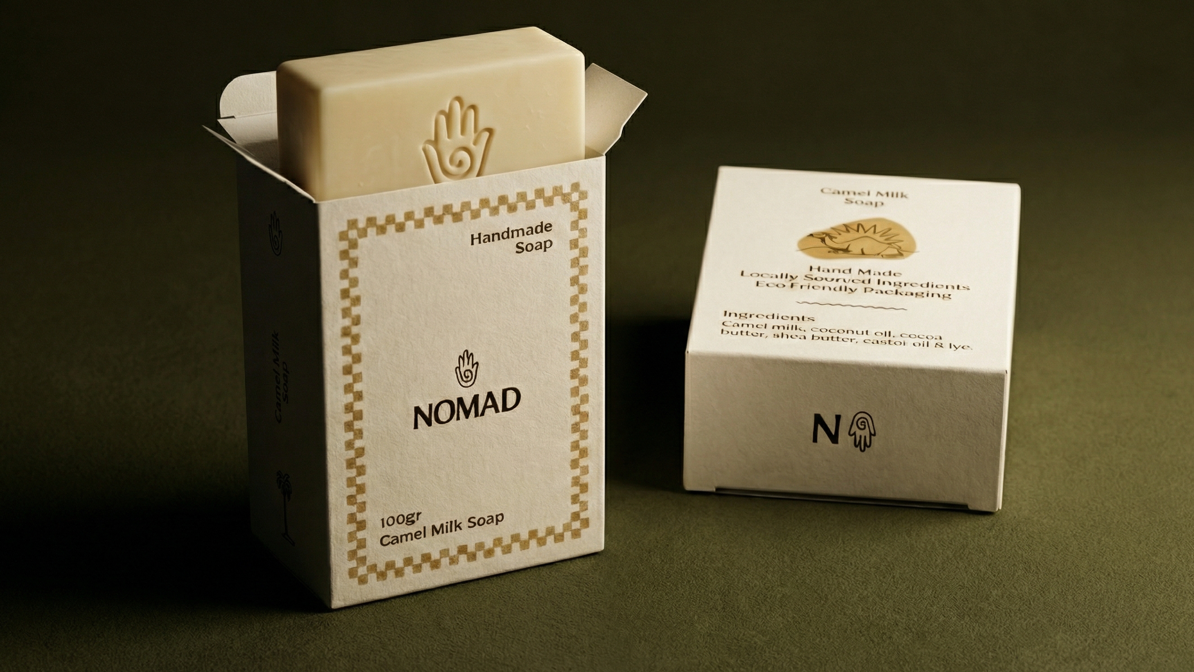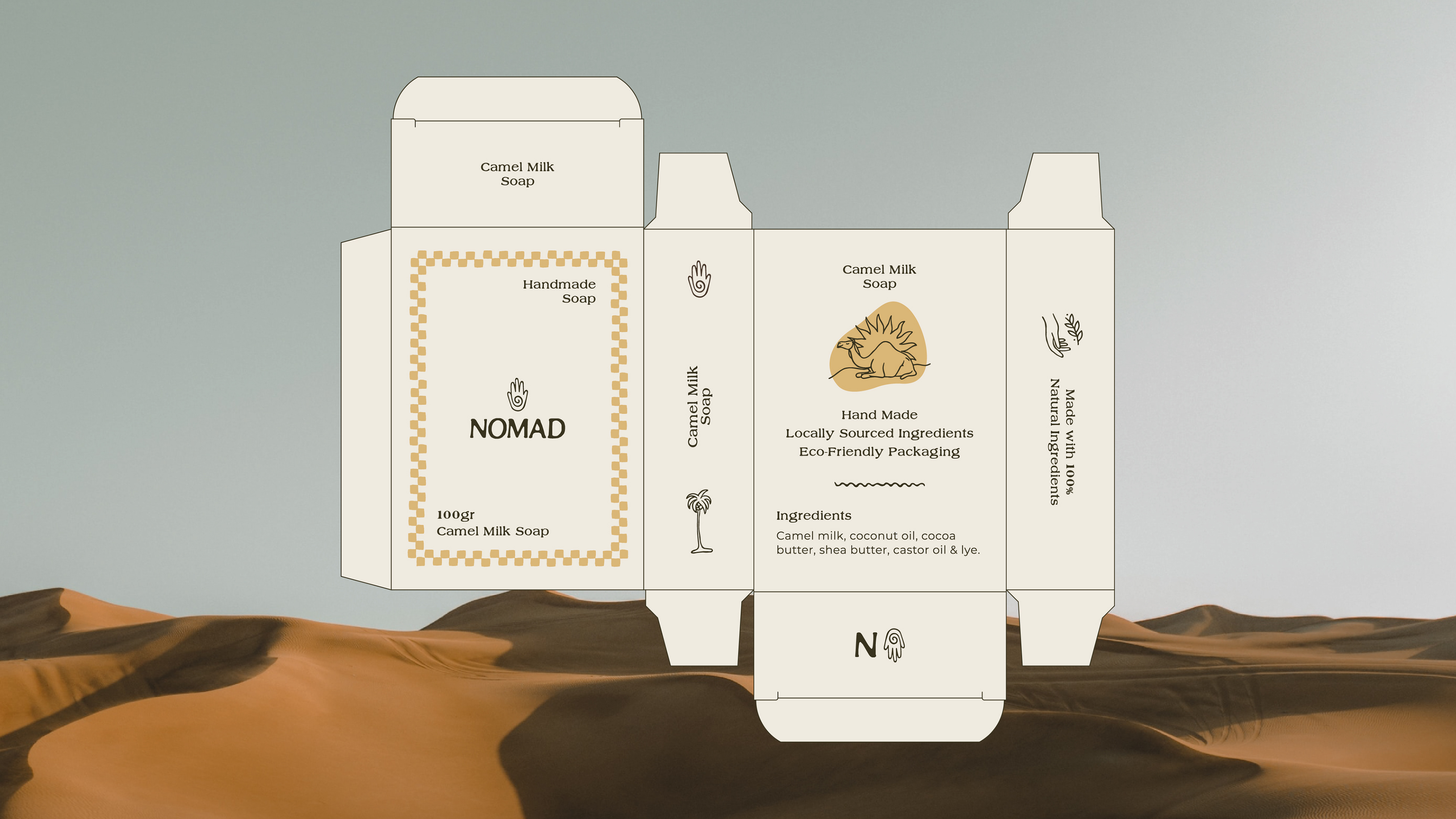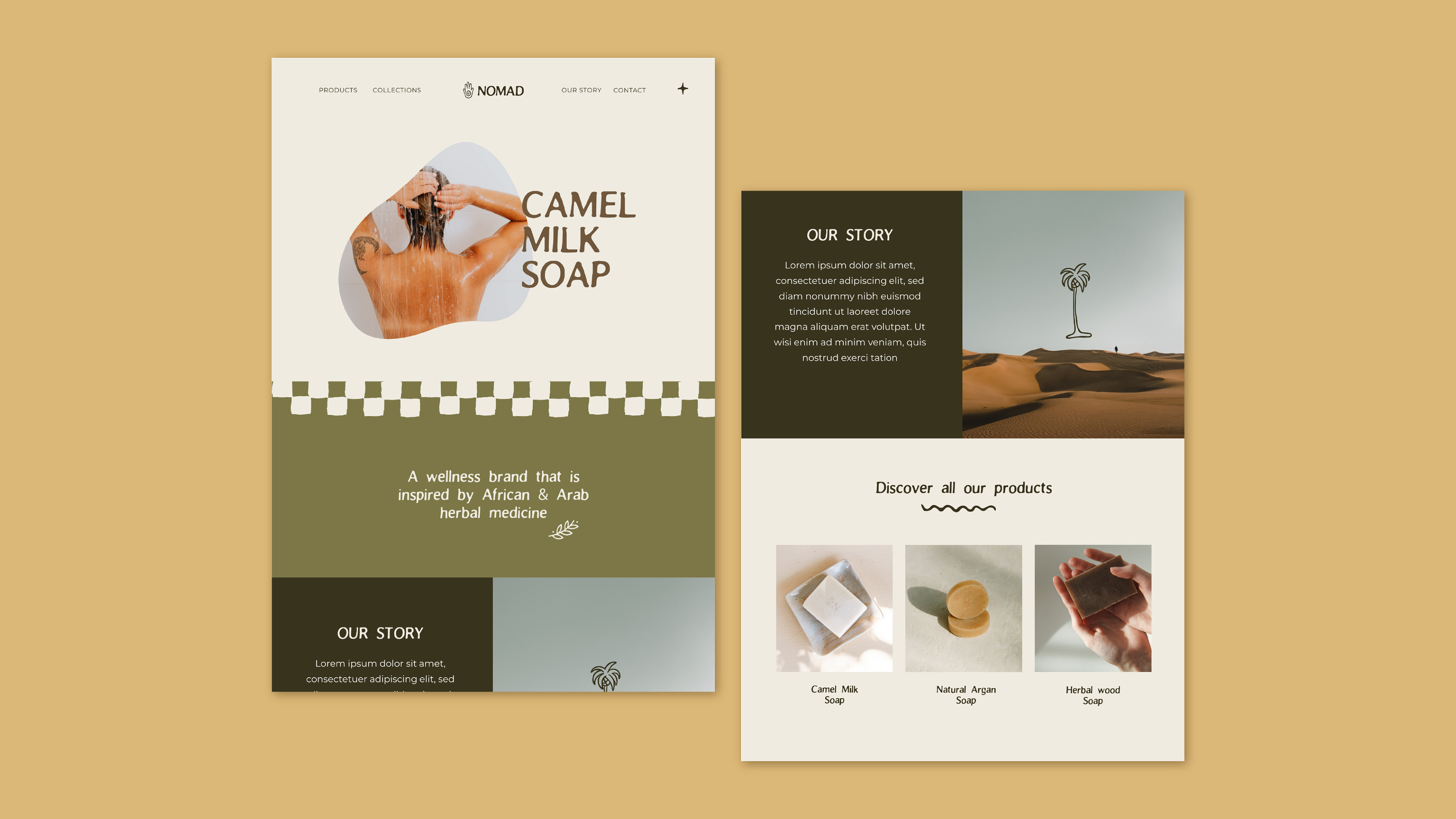 Nomad Soap is inspired by African and Arab herbal medicine, offering organic, natural, and handmade products. The visual identity was designed to convey authenticity, nurturing energy, and a connection to nature.